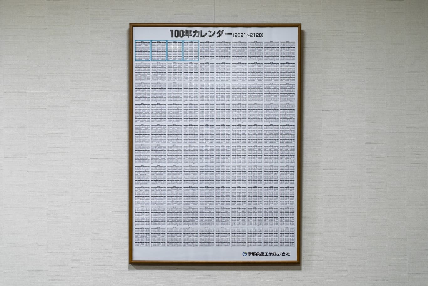 ―心から共感した理念をつないでいくことに集中できるのは幸せなことですね。壁に貼られている100年カレンダーも印象的です。