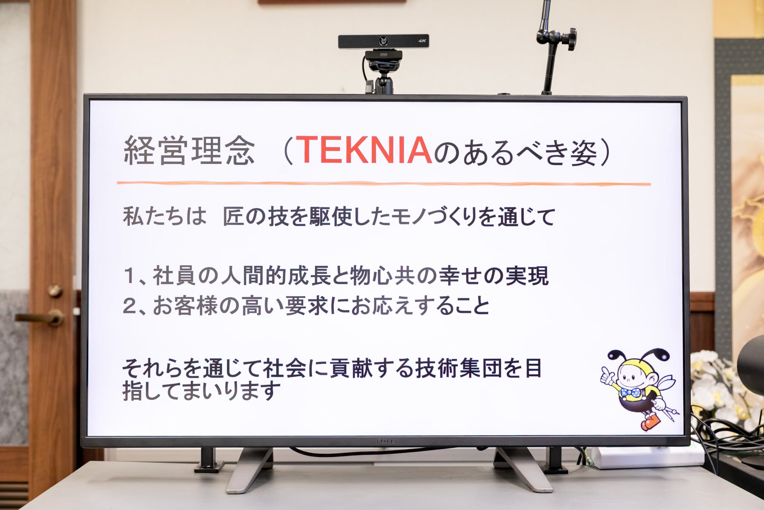 自分たちで作った言葉なので、思い入れが強いように感じます。経営理念と行動規範も朝礼で唱和していますが、風化しないんですよ。私はことあるごとに「TEKNIAは何のためにある会社か」「お客様の高い要求にお応えしているか」と現場で問いかけるようにしています。今のナンバー2、ナンバー3も企業理念を大事にしていて、僕と同じように言ってくれることで、社員たちにも浸透しています。