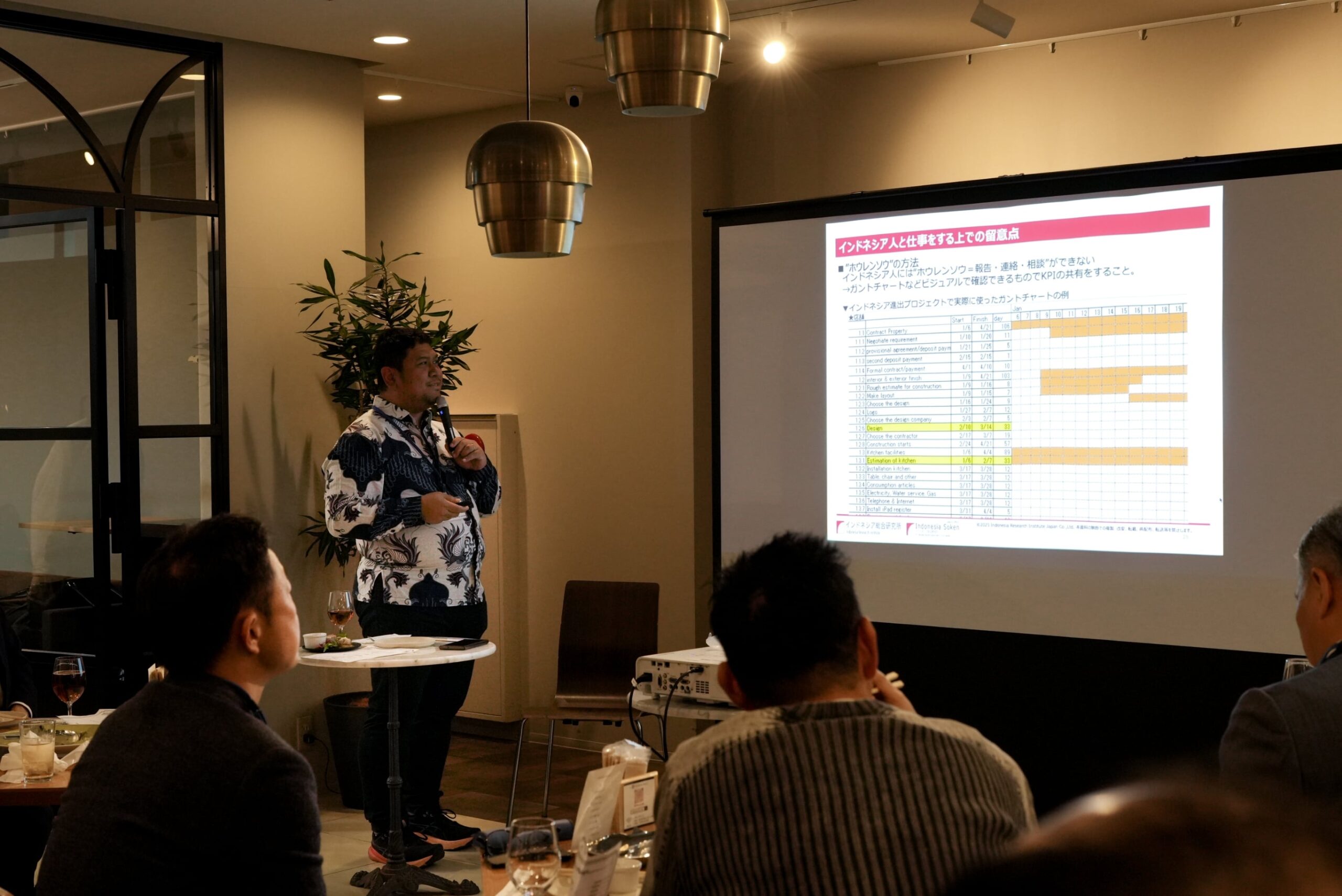 インドネシア人と仕事をする上で、気を付けたいことがいくつかあります。まず、インドネシアは離職率が高く、会社よりボスを重視します。ボスが抜けたら、下の人まで離職することがあります。また、当社でインドネシア人を採用すると、「私のジョブ・ディスクリプション(業務規定書)は何ですか」とよく聞かれます。仕事を明確に指示する必要があります。3つ目として、日本のビジネスでは基本であるホウレンソウ(報告・連絡・相談)はほぼしません。自分たちで何とかしようとするのはリスクでもあるので、いかにマネジメントするかが大事です。